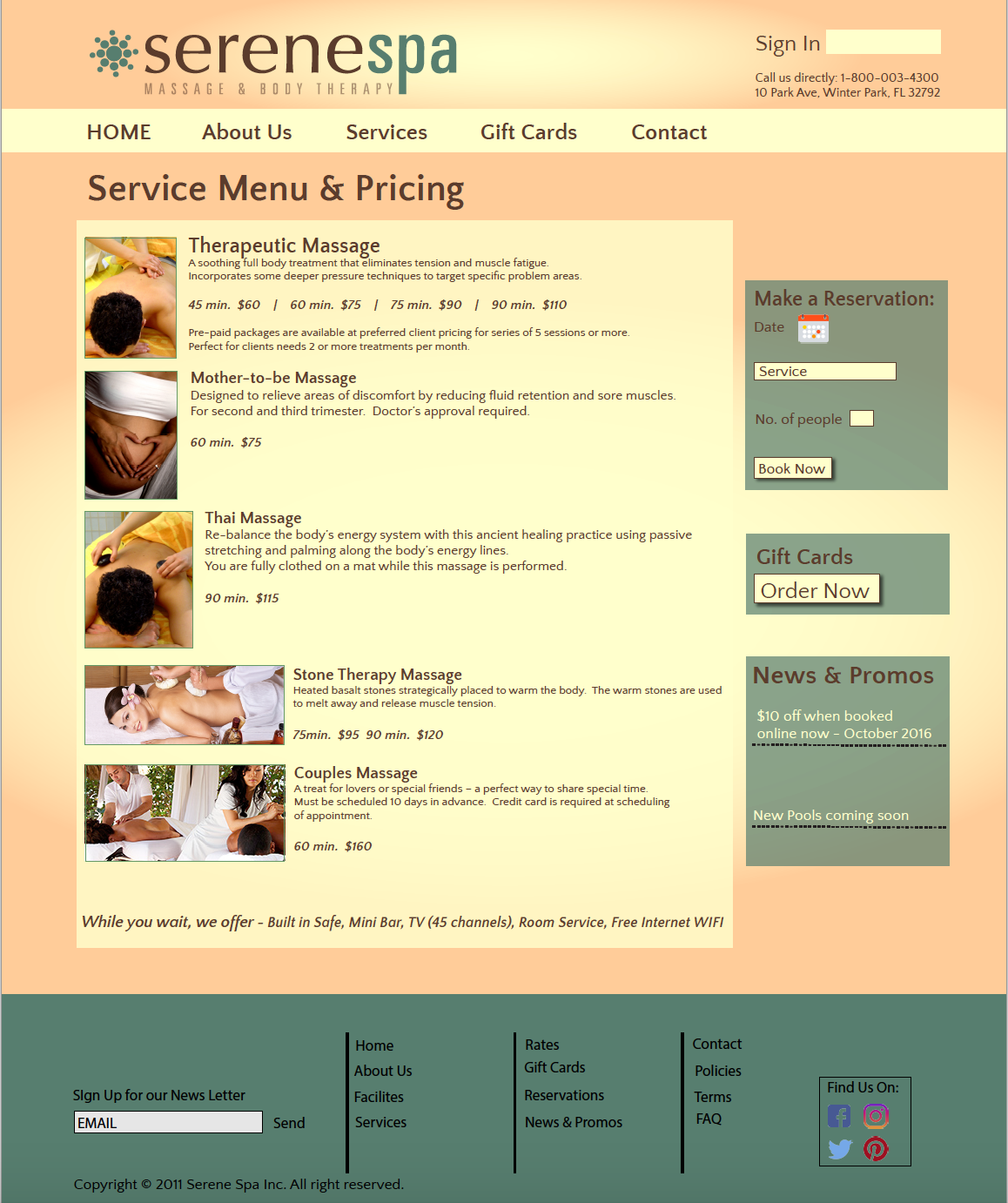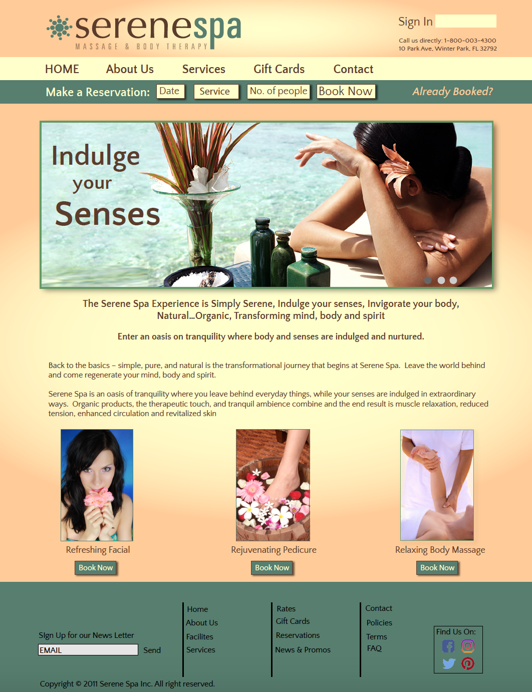 Interactive Media Design project. Mock web design for Serene Spa.