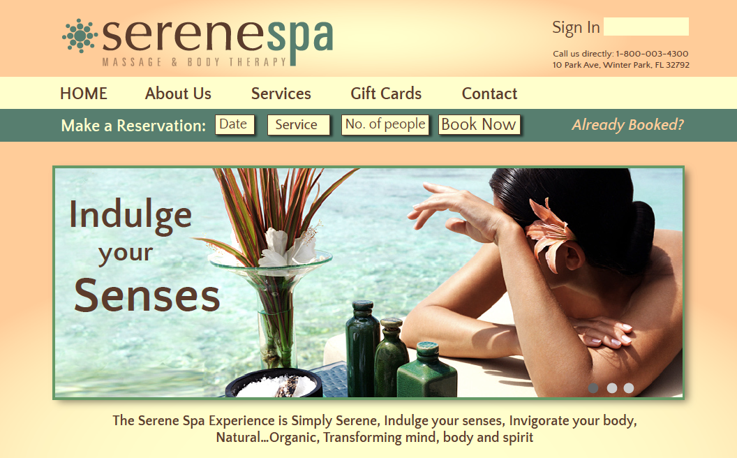 Serene Spa - Website design
